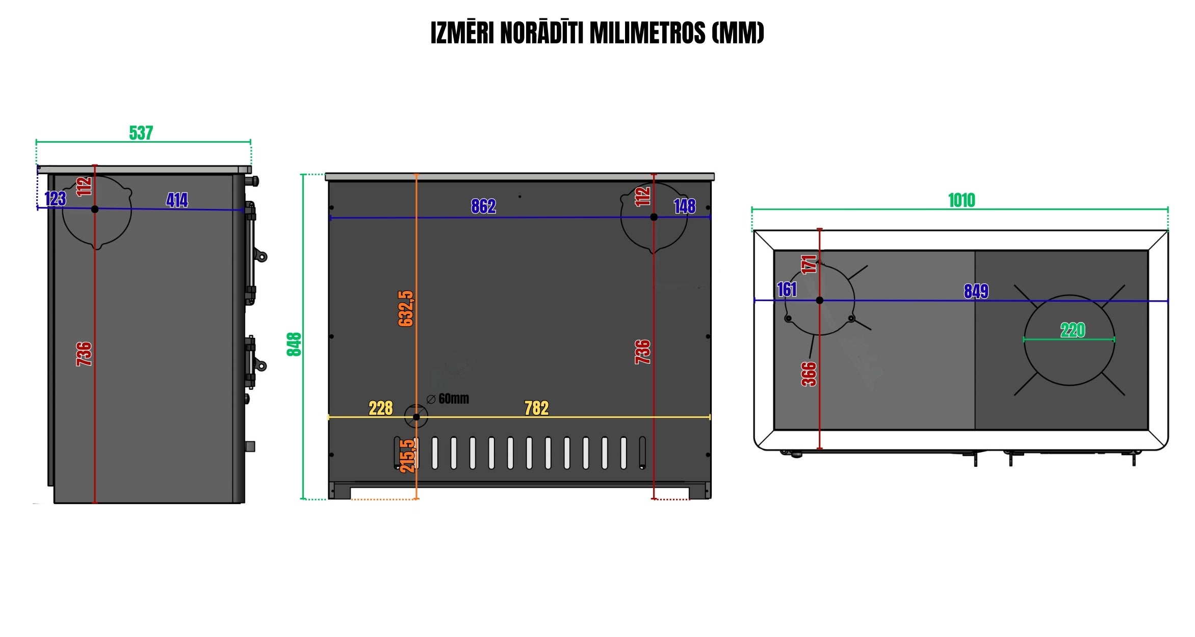 Augšējais dūmvada izvads diametru 120 mm.
