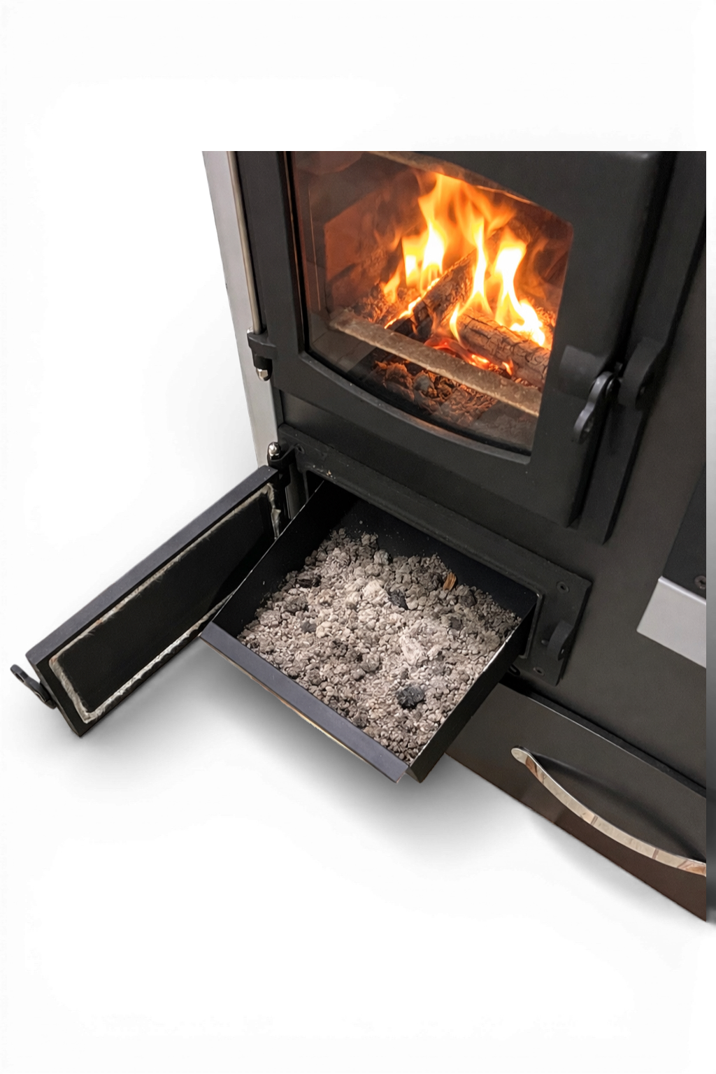 Čuguna reste un ietilpīga pelnu atvilktne ļauj sekundēs atbrīvoties no pelniem un uzturēt krāsni sakoptu.