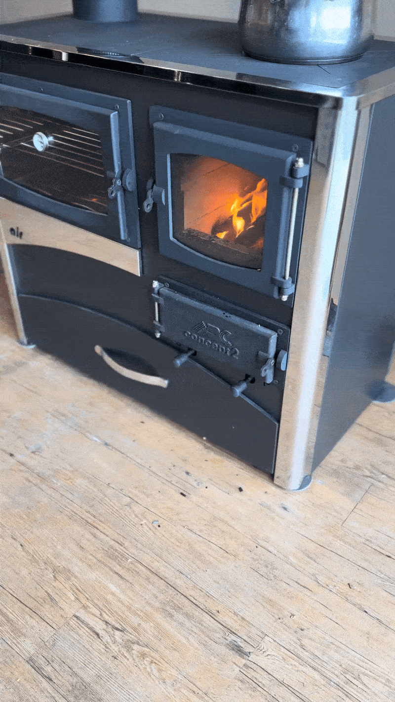 Mēs pirmo reizi izmantojām šo plīti, lai izceptu Ziemassvētku cepeti un tas izdevas lieliski. Tā arī nodrošina papildus siltumu majās, ko meklējām, jo nevēlējāmies pārkarsēt visu māju.