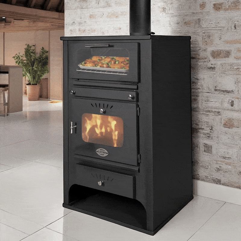 Centrālapkures krāsns NORDIX - izturīga, praktiska un efektīva. Krāsnij ir liela cepeškrāsns visām tavām mīļākajām maltītēm! NORDIX ir divas gaisa padeves - primārā, ļoti vieglai iekuršanai, un sekundārā, precīzai degšanas kontrolei. Degkameras iekšpusē ir arī atrodams siltummainis, kas ir izvietots gar visām degkameras sienām, nodrošinot augstu efektivitāti un ātru siltuma atdevi uz centrālapkures sistēmu. Aiz siltummaiņa visas sienas ir izklātas ar bieziem šamota ķieģeļiem, kas nodrošinšas izturību un lielu siltuma atdevi centrālapkures sistēmai. Konkrētās krāsns degkamera ir ļoti ietilpīga, var izmantot malkas pagales līdz 50cm garumam, un tās varēs salikt lielā daudzumā, nodrošinot ilgu degšanu. Protams, krāsnij arī ir ērti lietojama pelnu atvilktne, vieglam tīrīšanas procesam, un apjomīga malkas glabātuve krāsns apakšā. NORDIX ir tiešām ideālā centrālapkures krāsns, ja svarīga ir liela sildvirsma un ļoti ietilpīga degkamera!