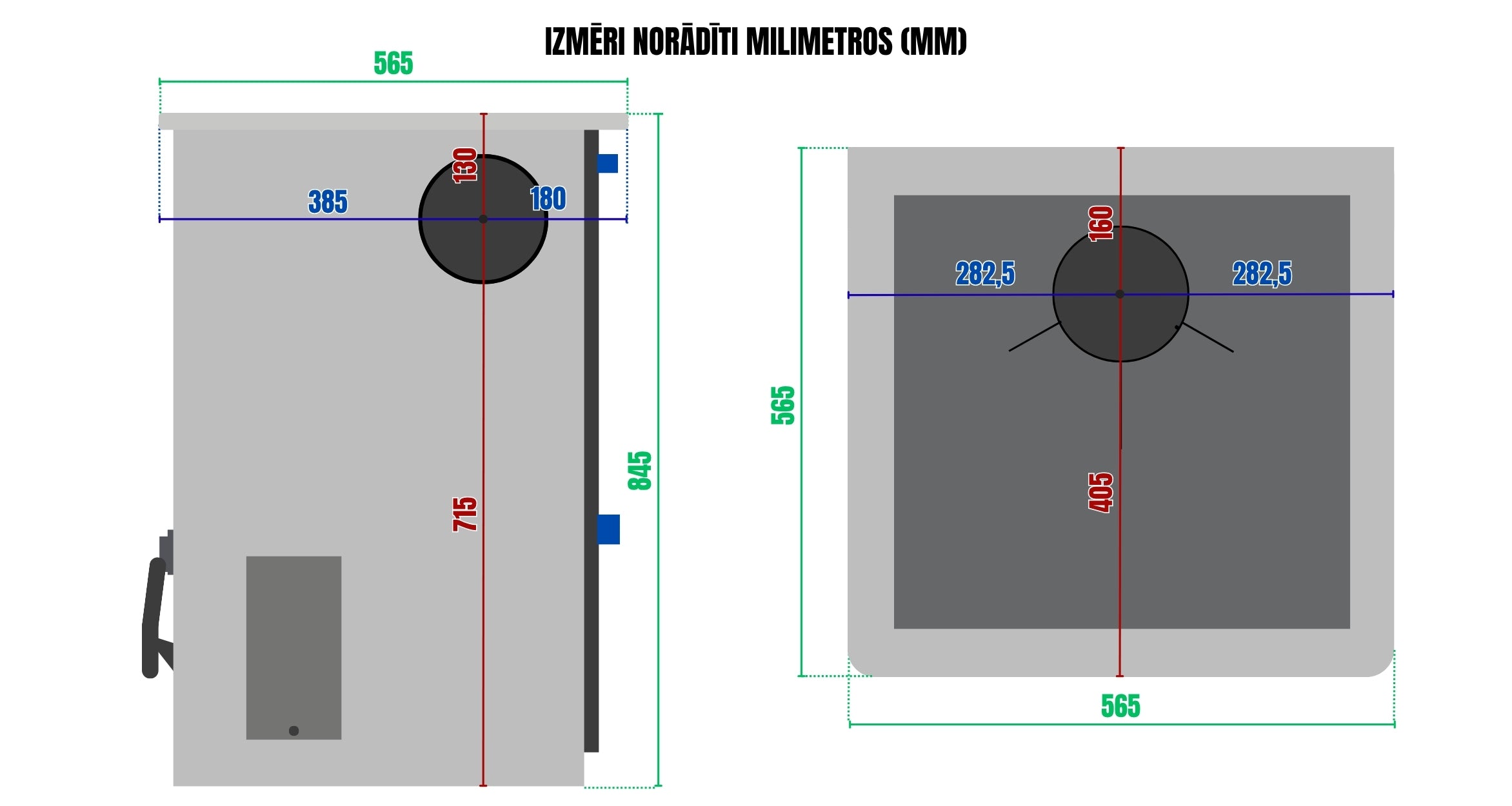 Augšējais dūmvada izvads diametru 150 mm