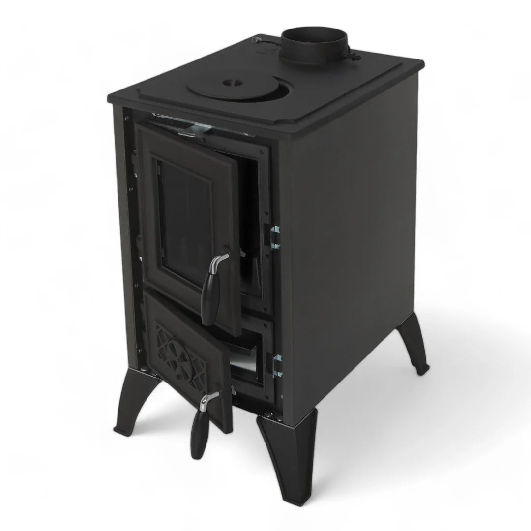 Iepazīsties ar IGLO - kompakta krāsniņa, kura izceļas ar praktiskumu un spējīgumu visās pozīcijās. Krāsniņa būs ideāla cilvēkiem, kas meklē jauku čuguna kamīnkrāsniņu ar sildvirsmu - ideāla māju un dzīvokļu virtuvei vai viesistabai. ILGO pamatā ir izgatavota no čuguna - tās sildvirsma, degkamera un durvis ir izlietas no čuguna, īpašam dizainam krāsns sāni ir izgatavoti no tērauda, kas pieejams vairākās krāsās. IGLO sildvirsma ir praktiska, gatavošanai ar 1-2 diviem traukiem vienlaicīgi un izņemamu riņķi gatavošanai uz tiešas uguns. Krāsniņas degkameru var aprakstīt ar vienu vārdu - ietilpīga, var ielikt lielu daudzumu malkas līdz 40cm garumam, kas ir tiešām iespaidīgi un neredzēti kompakto krāsniņu klasē. Liesmas kontrolei un lēnās degšanas iestatīšanai ir pieejamas visas gaisa kontroles gan primārā, gan sekundārā, gan iestrādāts krāsnī ir vilkmes aizbīdnis ar fiksatoru, šīs gaisa padeves kopā ar degkameras lielumu palīdzēs sasniegt degšanas ilgumu no 6- 8h. Ikdienas ērtībām ir iestrādāta pelnu atvilktne, vairs nekāda ķēpāšanas ar pelniem, tos varēs izbērt pāris sekunžu laikā. IGLO ir apņēmības pilna krāsniņa, kas Jūs sasildīs pat visbargākajā ziemā, papildus sniedzot nomierinošu uguns burvību caur tās stikliņu un garda ēdiena gatavošanas iespējas.