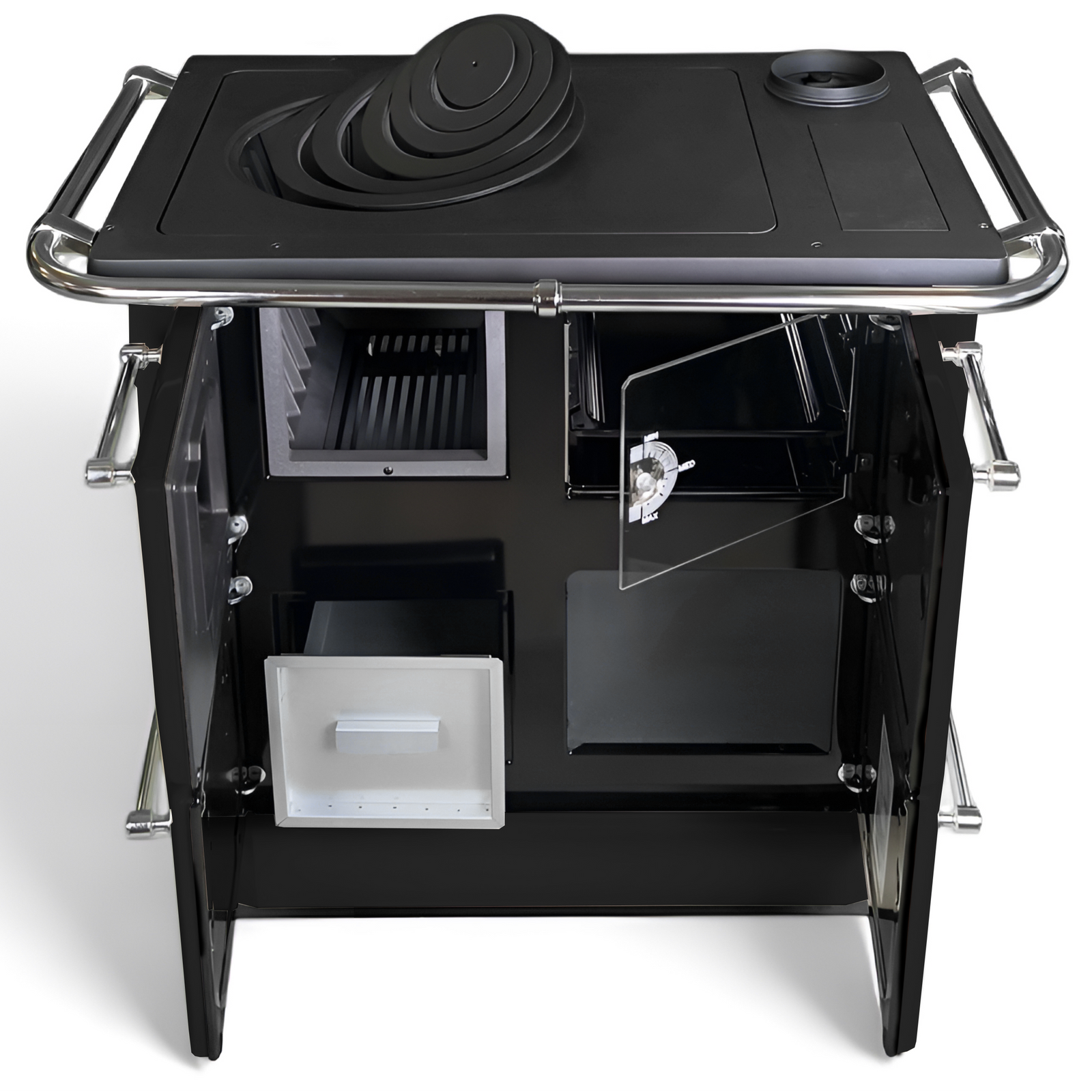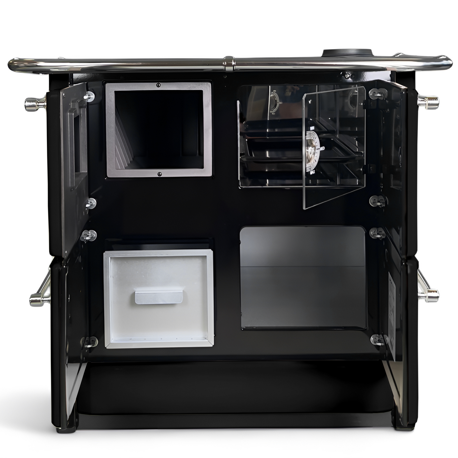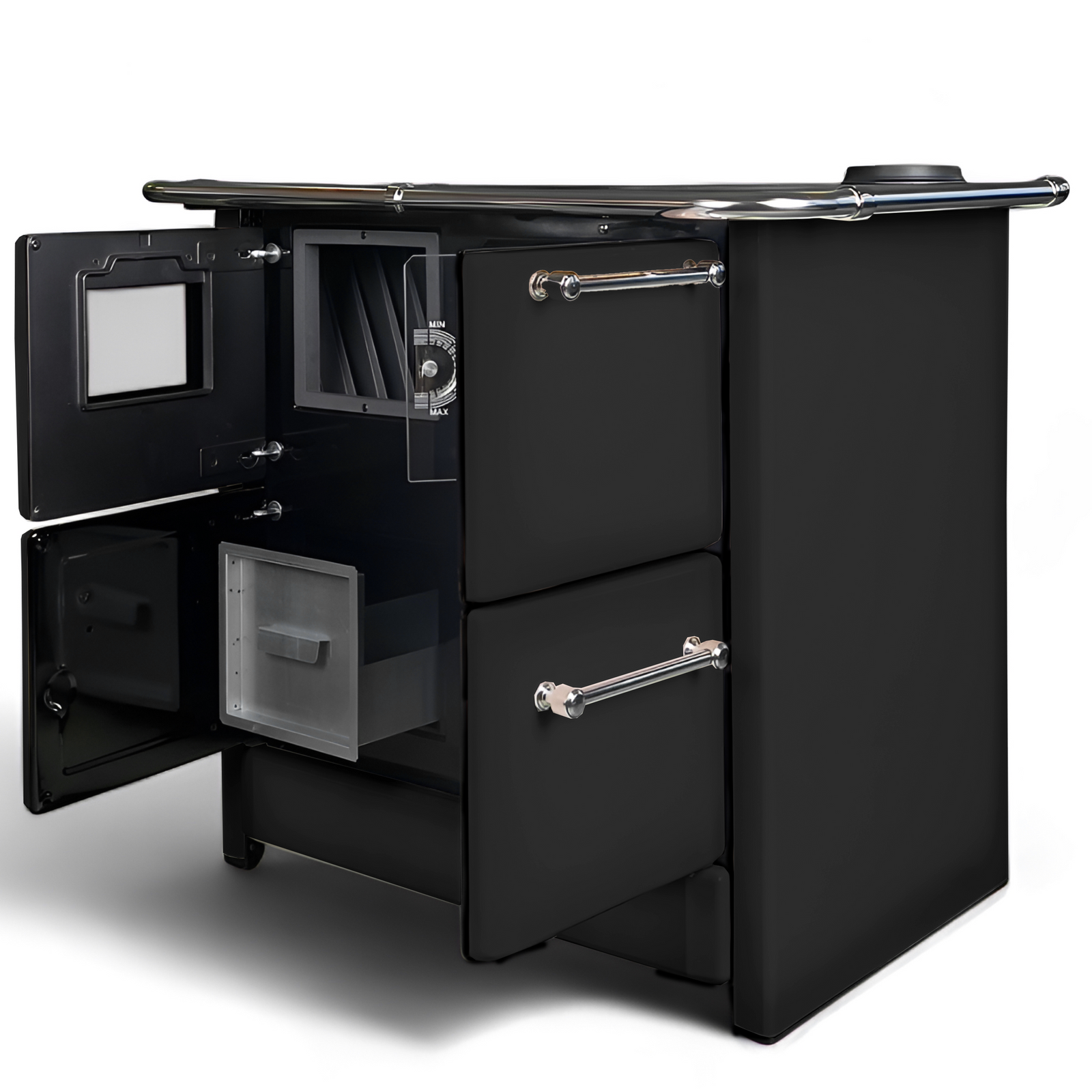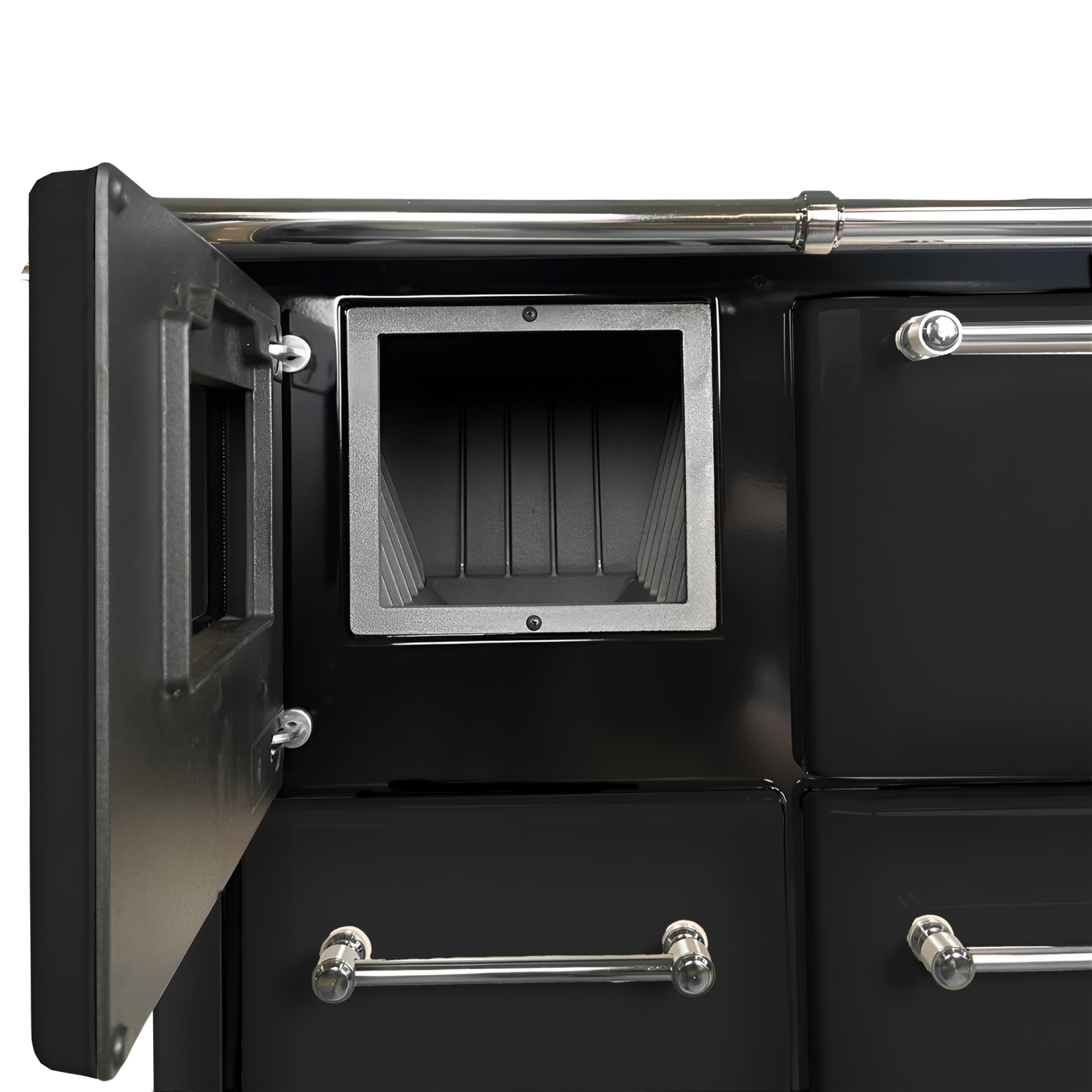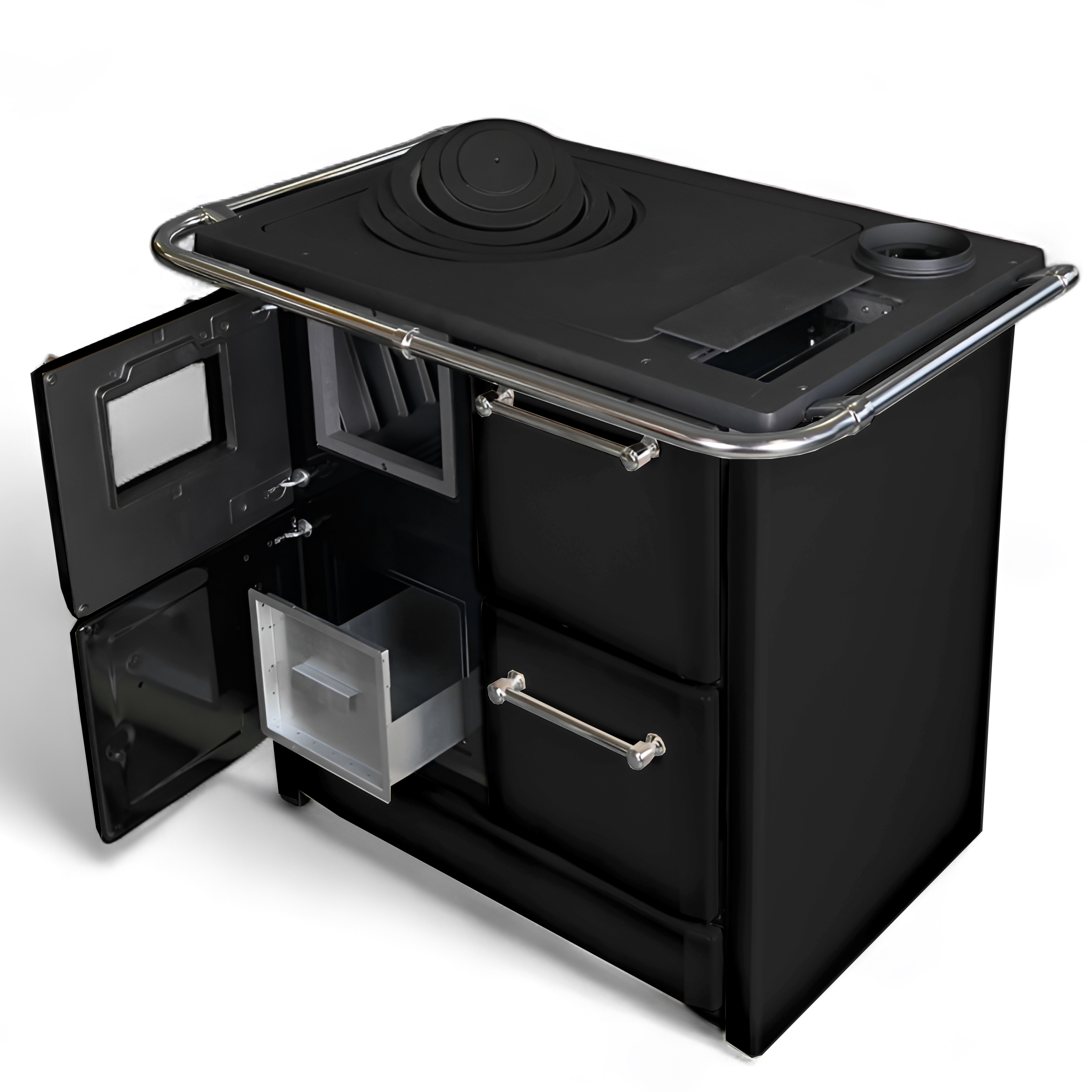 Modelis aprīkots ar nerūsējošā tērauda cepeškrāsni, regulējamu gaisa cirkulāciju vienmērīgai cepšanai, čuguna gatavošanas virsmu ar noņemamiem gredzeniem un izturīgu kurtuvi ar čuguna sieniņām. Ērtību nodrošina liels pelnu trauks un plašs uzglabāšanas nodalījums.