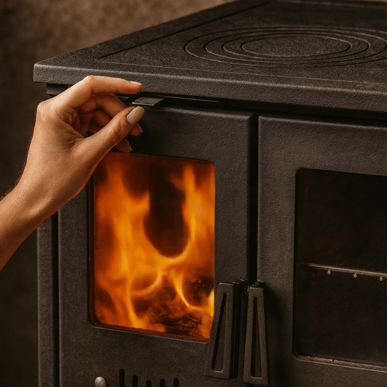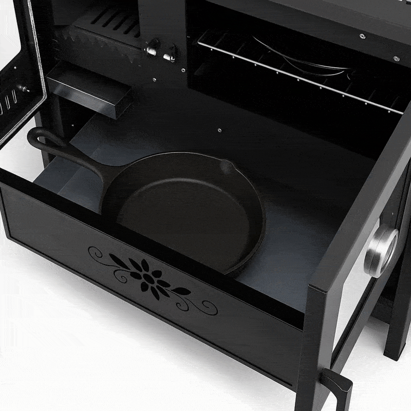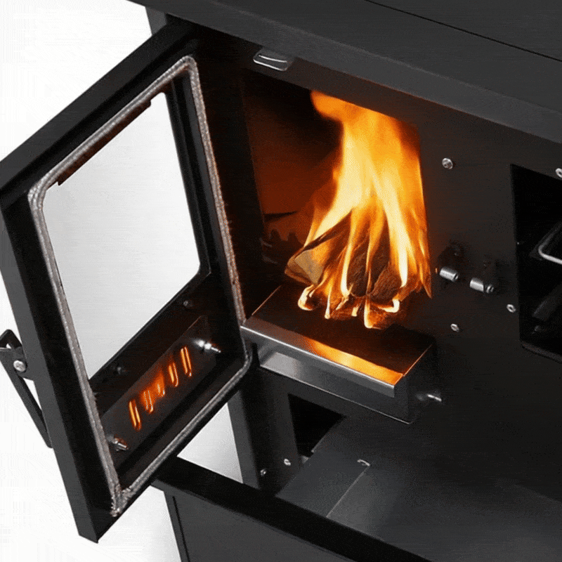 Primārā gaisa padeve ,kas iestrādāta degkameras durvīs, nodrošinās plīts vienkāršu iekuršanu.
