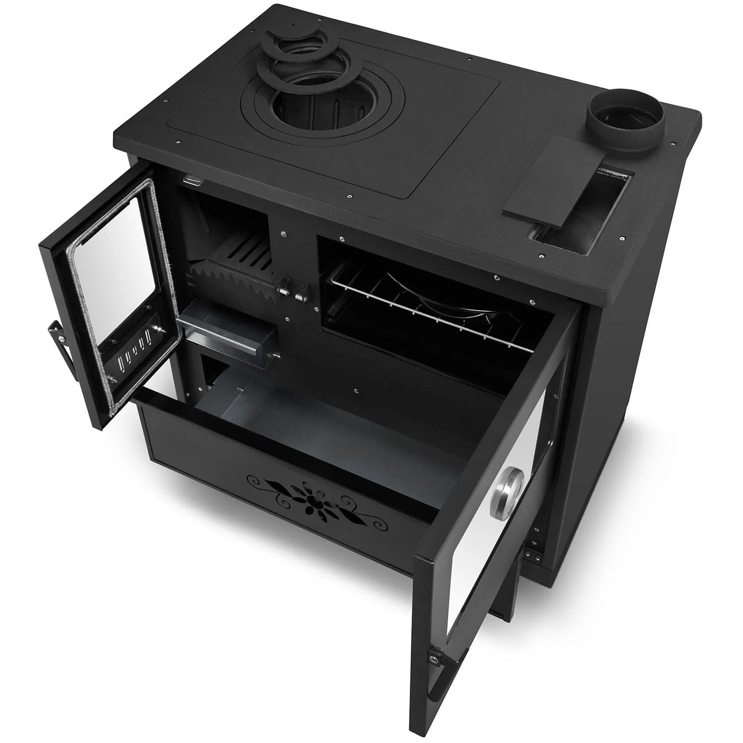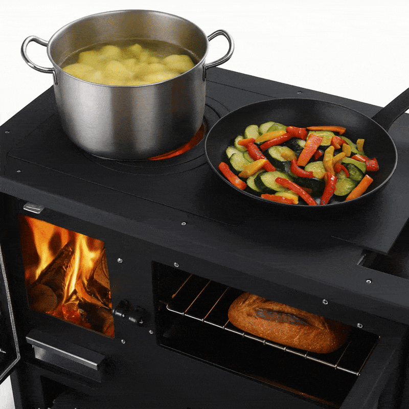 Malkas plīts gatavošanas virsma ir izgatavota no bieza čuguna un tā iekļauj 5 izņemamus riņķus ērtai gatavošanai uz tiešas uguns.