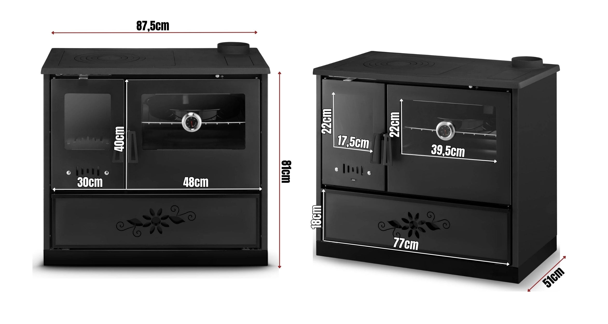 Degkamera lielai malkai, veidota no čuguna plāksnēm , ar malkas garumu līdz 40 cm un izturīgu čuguna resti. Plīts degkamera ir viens no ilgmūžības iemesliem, ko arī apstiprina 5 gadu garantija.