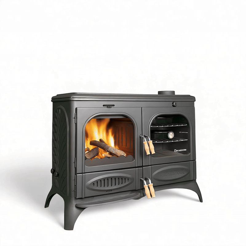 Ikdienas lietošanā īpašu komfortu sniedz iespaidīgi lielā degkamera, kas pielāgota līdz pat 50 cm garām pagalēm – tas ir retums šādas klases plītīm. Un tās durvīs iebūvētais stikls ļauj baudīt nomierinošo kamīna efektu, piešķirot siltumam vizuālu klātbūtni.