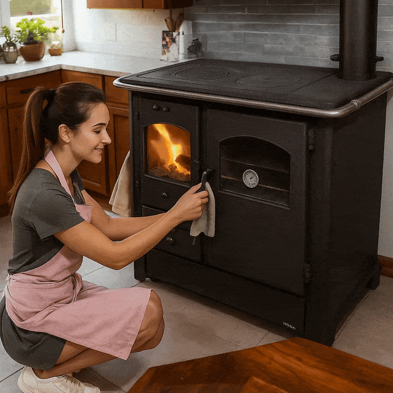 Lieliska plīts gan gatavošanai, gan apkurei. Virtuvē vienmēr silts, un ēdiens sanāk lieliski.