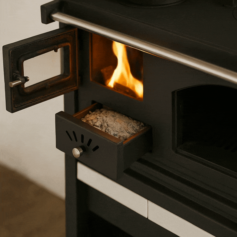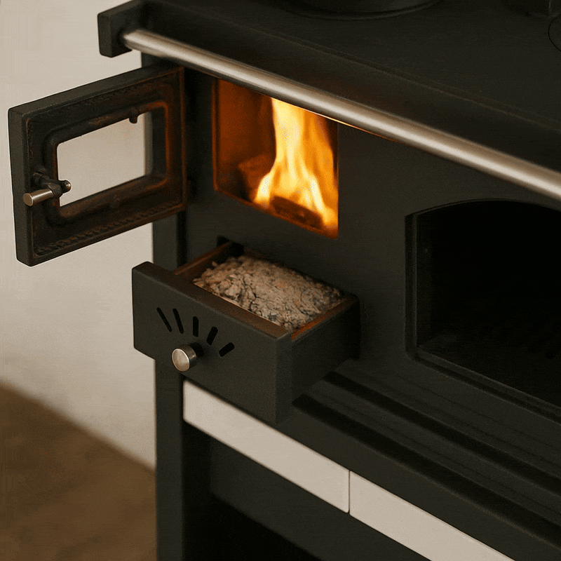 Primārā gaisa padeve, kas iestrādāta pelnu atvilktnē, ļaus izcilu liesmas kontroli un vienkāršu iekuršanu.