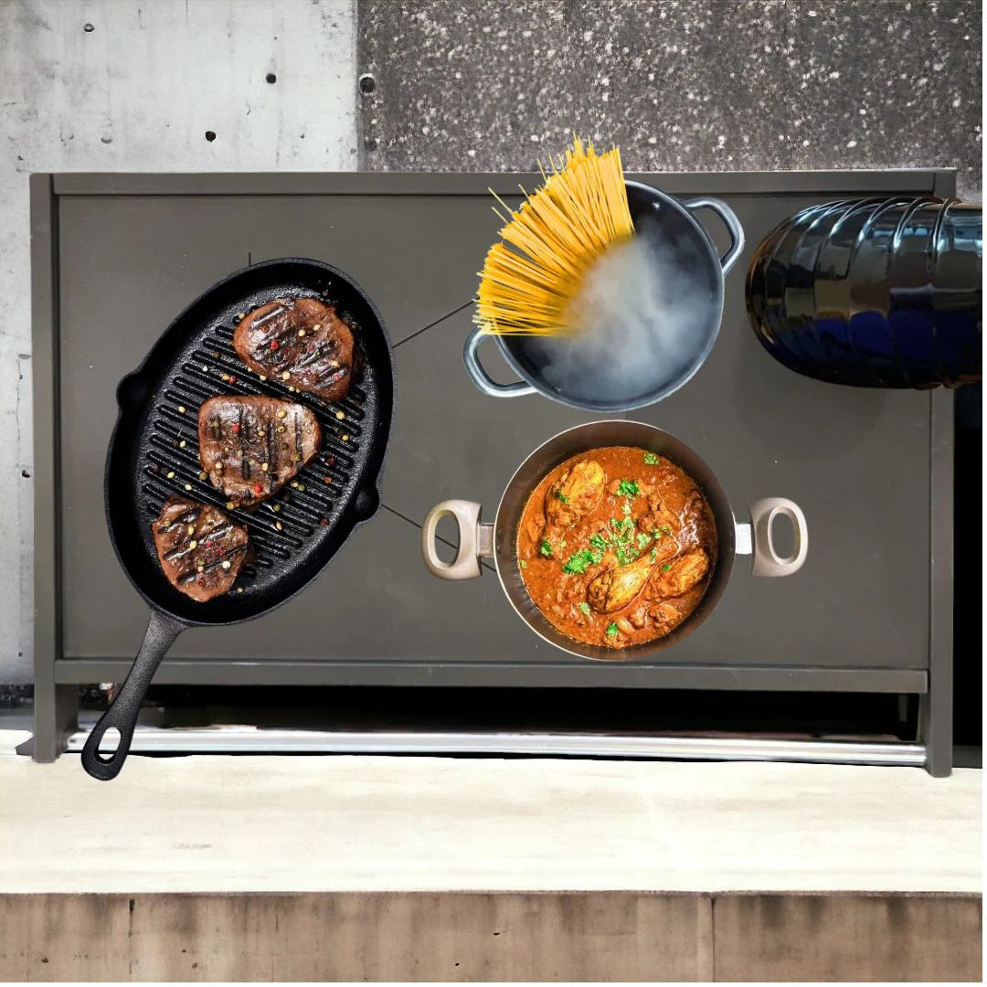 Malkas plīts gatavošanas virsma ir izgatavota no 6mm bieza auksti velmēta tērauda un tā iekļauj izņemamu riņķi ērtai gatavošanai uz tiešas uguns.
